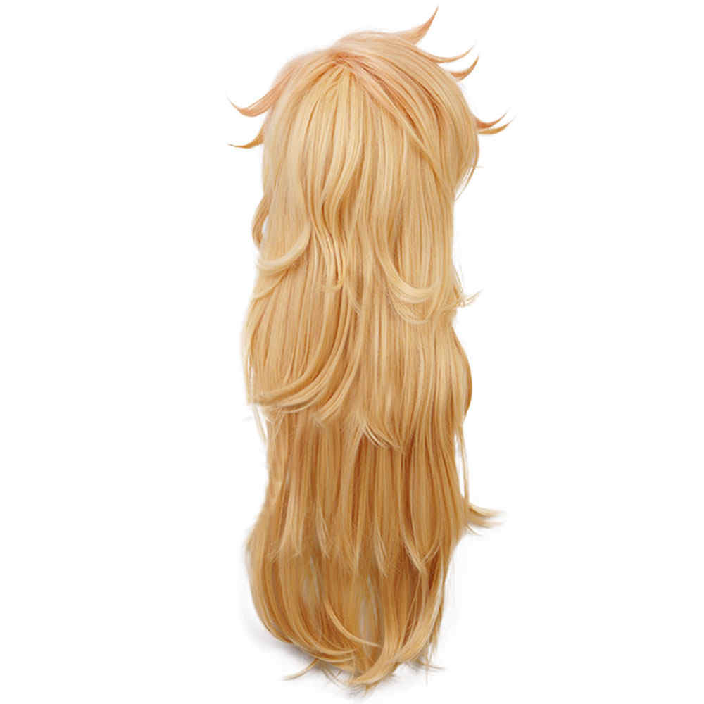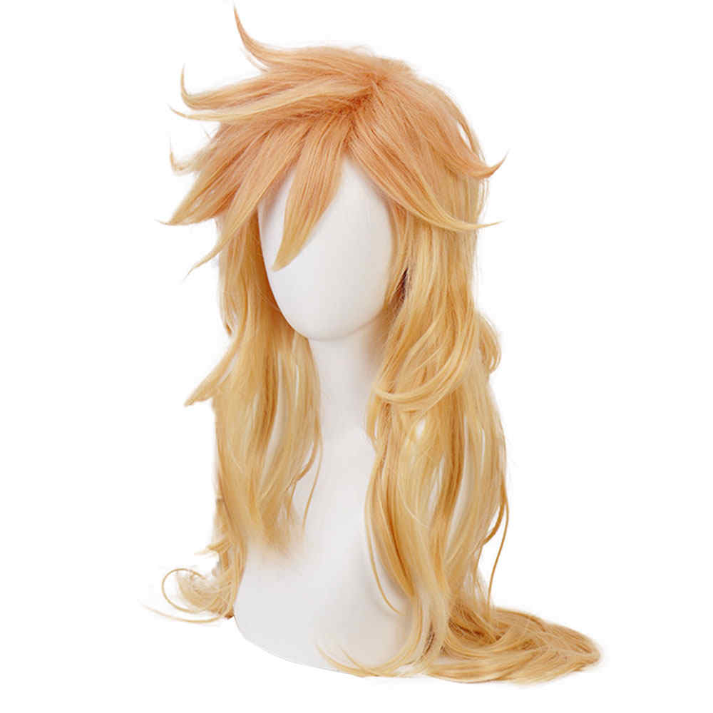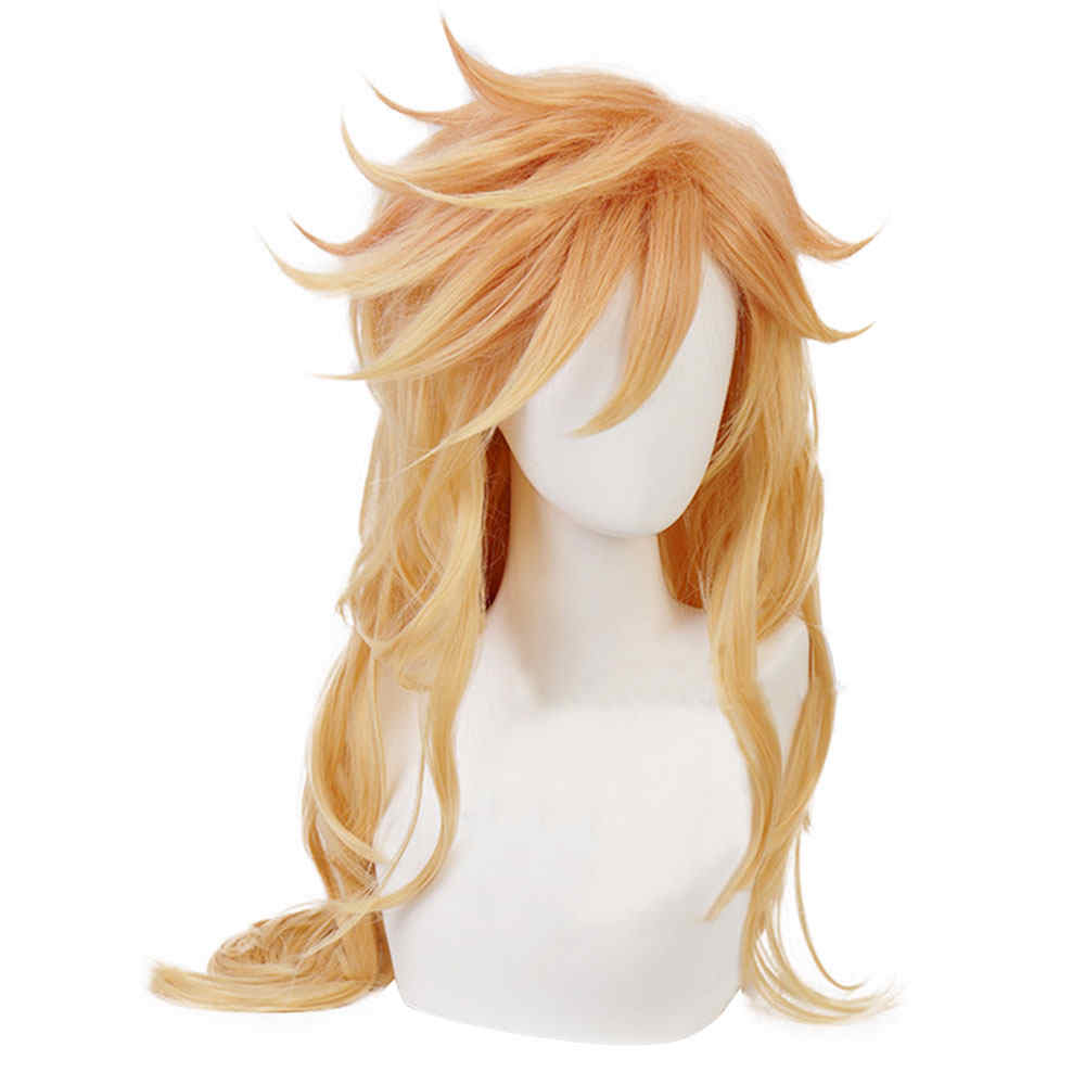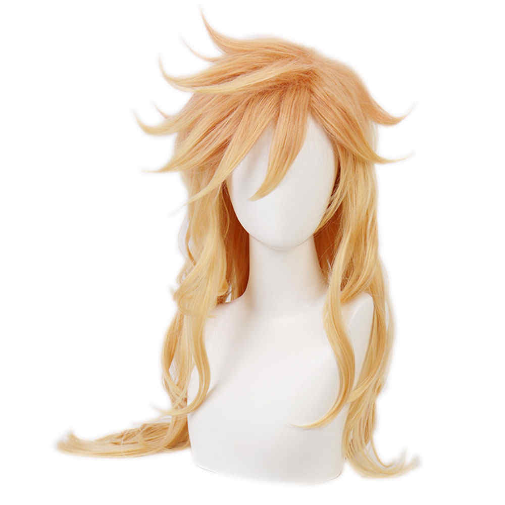 ★ Tipo: Doma doce Kizuki Gold Largo Rizado Halloween Wig Anime Demon Slayer Kimetsu No Yaiba
